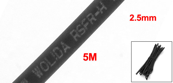2.5mm Dia. Black Heat Shrinkable Tube Shrink Tubing 5M 16.4Ft