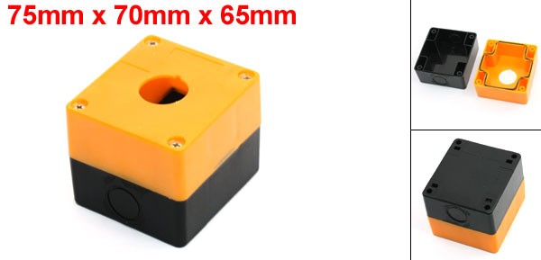 Product Name Control Station Shell Material Plastic Color Orange, Black Switch Location Number 1 Box Total Size 75 x 70 x 65mm / 3" x 2.8" x 2.6"(L*W*H) Fit for Switch Head Diameter 25mm/ 1" Net Weight 112g Package Content 1 x Control Station Shell