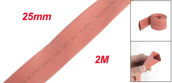 25mm Dia. Heat Shrinkable Tube Shrink Tubing 2M 6.6ft Red