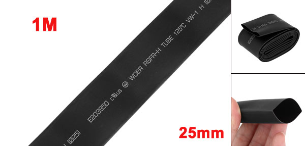 25mm Diameter 2:1 Polyolefin Heat Shrinkable Tube Black 1M