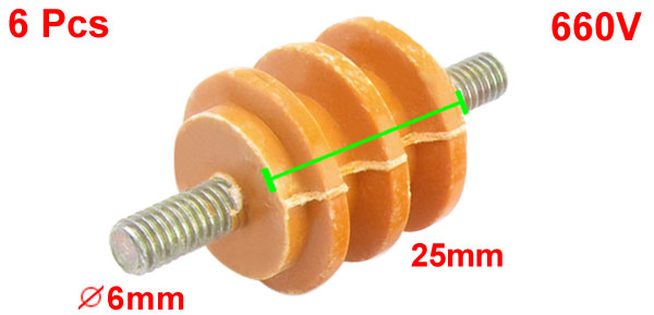 Product Name Busbar Insulator Main Material Dough Molding Compound Unsaturated Resin, Brass Withstanding Voltage 660V Thread Diameter 6mm/ 15/64" Busbar Insulator Size 25 x 23mm/ 1" x 0.9"(H*D) Screw Length 5.1cm/ 2" Main Color Orange Total Weight 134g Package Content 6 x Busbar Insulator - Reviews