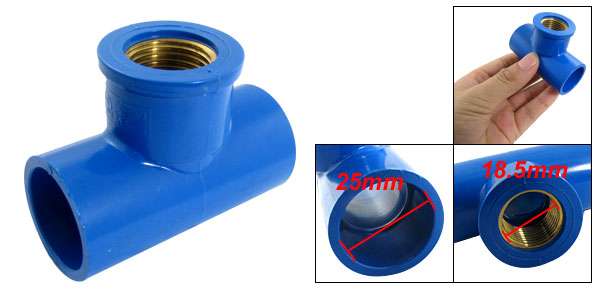 Product Name PVC Connector Type T Type Material PVC-U, Brass Slip End Diameter (Approx.) 25mm / 1" Female Thread Diameter (Approx.) 18.5mm / 0.73" Total Size (Approx.) 65 x 51 x 34mm / 2.5" x 2" x 1.3" (L * W * T ) Color Blue Weight 48g Package Content 1 x PVC Connector - Reviews