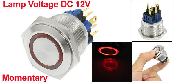 Item Name Push Button Switch Contact Type Momentary(1 NO 1 NC) Model MP025S/F11-E Switch Rating 250VAC, 5A Lamp Voltage DC 12V LED Color Red Pin Number 6 Mounting Thread Diameter 25mm / 0.98" Total Size (Approx.) 41 x 34mm / 1.6" x 1.36" (L*W) Material Stainless, Electric Parts Housing Color Silver Tone Net Weight 45g Package Content 1 x Push Button Switch - Reviews