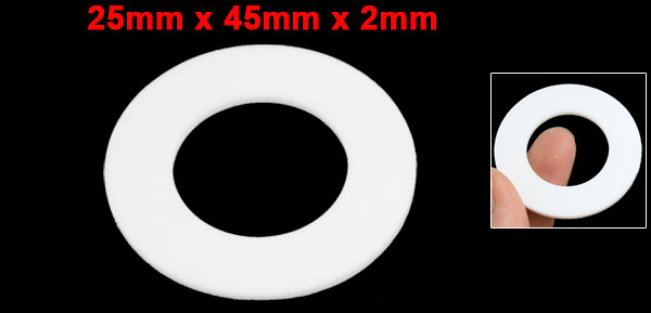 Product Name Flat PTFE Gasket Type Flat Material Polytetrafluoethylene(PTFE) Inside Diameter 25mm / 31/32"(0.984") Outside Diameter 45mm / 1 7/9"(1.77") Thickness 2mm / 5/64"(0.787") Color White Net Weight 6g Package Content 1 x Flat PTFE Gasket - Reviews
