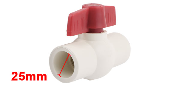 Product Name Ball Valve Ends Type Slip x Slip Slip End Size 25mm x 25mm / 1" x 1" Handle Size 74 x 26mm/ 3" x 1"(L*Max.W) Overall Size (Approx.) 85 x 45 x 74mm/ 3.3" x 1.8" x 3"(L*Max.W*H) Color White, Red Material UPVC Net Weight 106g Package 1 x Ball Valve - Reviews