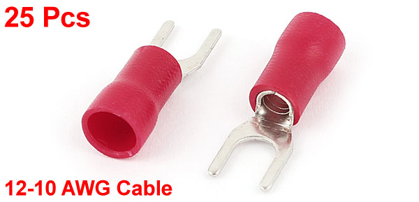 25PCS 12-10 AWG #10 Stud Red Insulated Fork Spade Terminals Electrical Connector