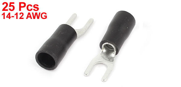 25PCS 14-12AWG #8 Stud Black Insulated Fork Spade Terminal Electrical Connector