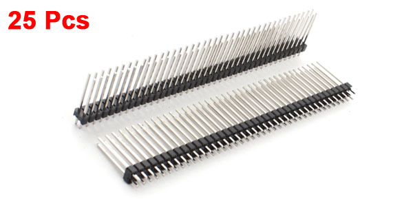 Product Name Pin Header Position 80Pin (2x40 Pin) Row Double Row Mounting Angle Straight Pin Pitch 2.54mm/0.1" Pin Length 20mm/0.8" Total Length 100mm/4" Material Plastic, Metal Color Black, Silver Tone Weight 169g Package Content 25 Pcs x Straight Pin Headers - Reviews