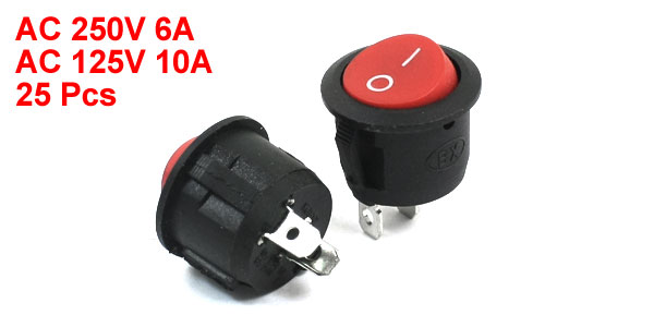 AC 125V 10AOverall Size 23 x 29mm/0.9" x 1.14"(Max.D*H) Mounting Hole Dia. 20mm / 0.8" Color Black, Red, Silver Tone Material Plastic, Metal Net Weight 106g Package Content 25 x Rocker Switches - Reviews
