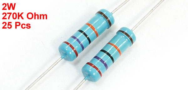 Product Name Resistors Type Metal Film Power Rating 2W Resistance Tolerance ± 1% Resistance 270K Ohm Body Size 15 x 5 mm / 0.59" x 0.2" (L*D) Lead Diameter 0.5 mm / 0.02" Total Length(Approx.) 63mm / 2.5" Color As the Picture Show Weight 26g Package Content 25 Pcs x Metal Film Resistors - Reviews