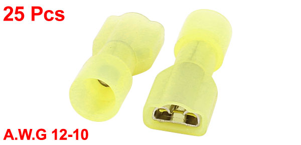 25Pcs 6.6mm Insulated 12-10 AWG Gauge Wire Crimp Terminal Connector Yellow