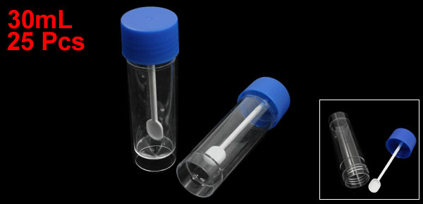 25Pcs Blue Cover Clear Plastic Round Shape Urine Test Cups Holder 30mL