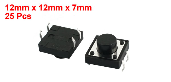 25Pcs Momentary Tact Tactile Push Button Switch 12x12x7mm 4-pin DIP