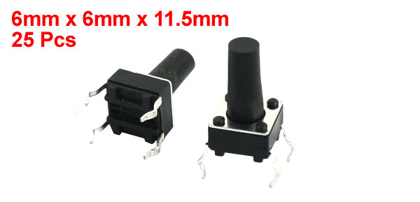 25Pcs Momentary Tact Tactile Push Button Switch 6x6x11.5mm 4-pin DIP