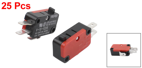 Main Color Red, Black Brand DMiotech Action Type Momentary Actuator Type 0 Country of Manufacture CHINA Fixing Holes Dia. 0.31cm / 0.12" Model V-15-1C25 Material Plastic, Metal Contact Type SPDT Contact Configuration 1NO,1NC Product Name Micro limit Switch Net Weight 149g Terminal Blade Width 0.5cm / 0.2" Package Content 25 x Micro Switch Rating DC 0.6A 125V DC 0.3A 250V AC 15A 1/2HP 125V/250V Button Height 0.3cm / 0.12" Switch Body Size 2.8 x 1.6 x 1cm / 1.1" x 0.6" x 0.4"(L*W*H) - Reviews