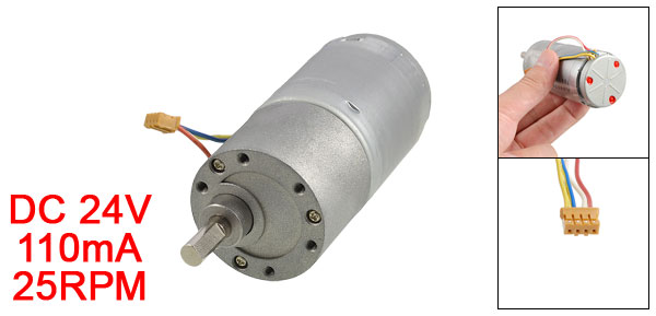 Product Name DC Geared Motor Model Type 37GB Rated Voltage DC 24V Current 110mA Speed 25RPM Shaft Size 6 x 13mm/ 0.24" x 0.51"(D*H) Body Size 37 x 79mm / 1.5" x 3.1"(Max.D*H) Cable Length 65mm/ 2.6" Total Length 101mm / 4"