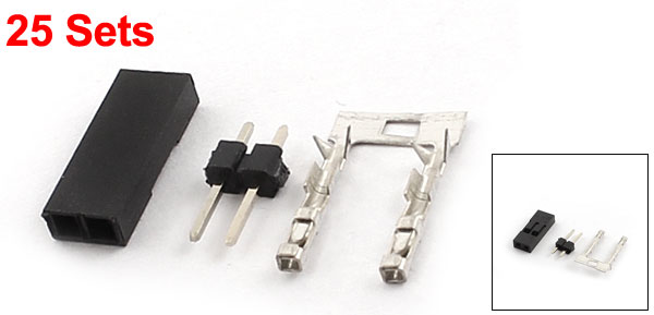 25Set 2.54mm Pitch 2-Pin Black Jumper Wire Housing + Pin Terminal Connector