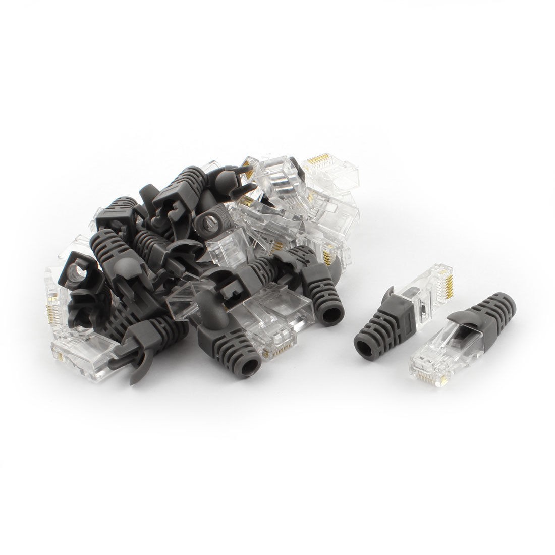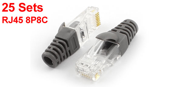 25Set 8P8C RJ45 Cat5 Cat5e Cat6 Connector Network Plug + Gray Boot Cover