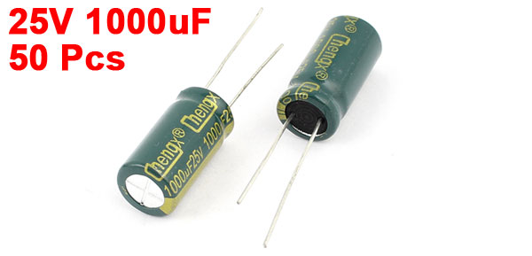 Product Name Electrolytic Capacitor Type Radial Lead Temperature -40 - +105C Withstand Voltage 25V Capacitance 1000uF Body Size 10 x 20mm / 0.4"x 0.87" (D*L) Lead Dia 0.6mm/0.02" Dielectric Material Aluminum Weight 103g Color Black Package Content 50Pcs(+/-2%) x Electrolytic Capacitor - Reviews