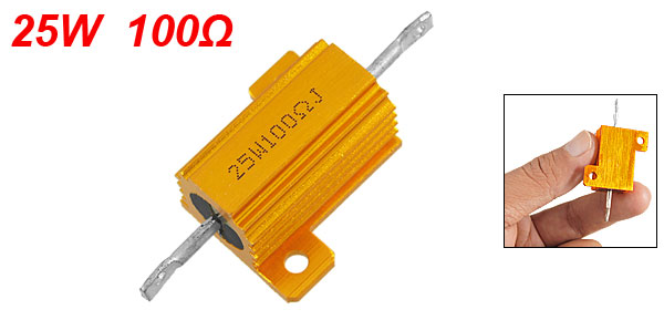 Product Name Aluminum Housed Resistor Resistance Value 100Ω Power Rating 25W Resistance Tolerance ± 5% (J) Body Size 28 x 15mm/ 1.1" x 0.59" (L*D) Mounted Hole Size 1.5mm/ 0.06", 3mm/ 0.12" Total Size 55 x 31 x 15mm/ 2.2" x 1.2" x 0.59" (L*W*T) Casing Material Aluminum Color Gold Tone Weight 15g Package Content 1 x Aluminum Housed Resistor - Reviews