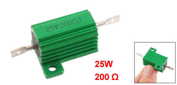 Product Name Aluminum Resistor Resistance Value 200 Ω Power Rating 25W Resistance Tolerance ± 5% (J) Body Size 26 x 15mm/1" x 0.6" (L*D) Mounted Hole Size 1.8mm/ 0.07", 3.3mm/ 0.13" Total Size 50 x 27 x 15mm/2" x 1.1" x 0.6" (L*W*T) Casing Material Aluminum Color Green Weight 13g Package Content 1 x Aluminum Resistor - Reviews
