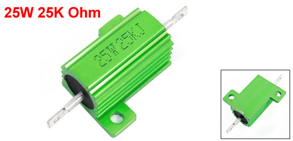 25W 25000 Ohm Axial Chassis Screw Mounted Aluminum Clad Resistor Green