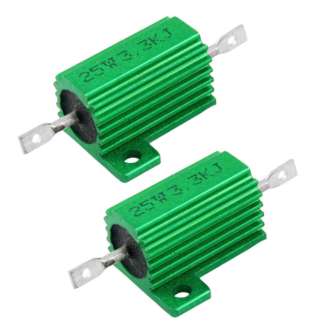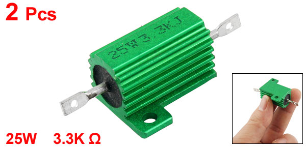 25W 3.3K Ohm Green Aluminum Housed Wirewound Resistors 2 Pcs