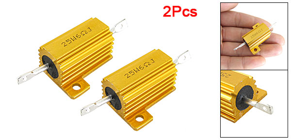 Product Name Aluminum Housed Wirewound Resistor Resistance Value 6 Ohm Power Rating 25W Resistance Tolerance ± 5% (J) Body Size 2.7 x 1.5cm / 1.1" x 0.6" (L*D) Total Size 5.4 x 2.8 x 1.5cm / 2.1" x 1.1" x 0.6" (L*W*H) Casing Material Aluminum Color Gold Tone Weight 28g Package Content 2 x Aluminum Housed Wirewound Resistors - Reviews