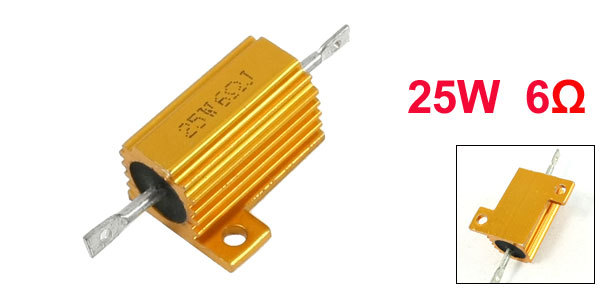 Product Name Aluminum Resistor Resistance Value 6 Ohm Power Rating 25W Resistance Tolerance ± 5% (J) Dimension 2.5 x 2 x 1.5cm/ 1" x 0.78" x 0.6" (D*W*H) Mount Size 4.2 x 2cm/ 1.6" x 0.8" (L*W) External Material Aluminum Color Gold Tone Net Weight 15g Package Content 1 x Aluminum Resistors - Reviews