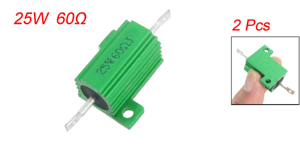 Product Name Aluminum Housed Resistor Resistance Value 60 Ohm Power Rating 25W Resistance Tolerance ± 5% (J) Body Size 26 x 15mm/ 1.02" x 0.59" (L*D) Mounted Hole Size 1.8mm/ 0.07", 3mm/ 0.12" Total Size 51 x 21 x 15mm/ 2" x 0.83" x 0.59" (L*W*T) Casing Material Aluminum Color Green Weight 27g Package Content 2 x Aluminum Housed Resistor - Reviews