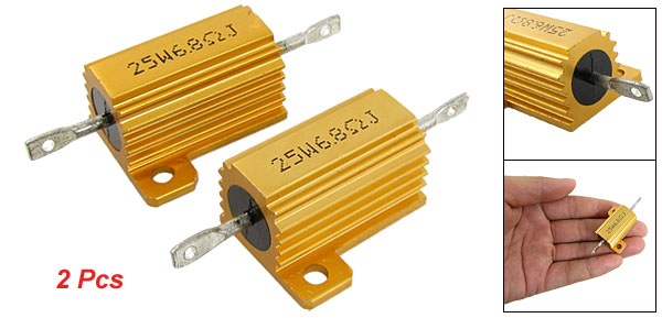 Product Name Aluminum Housed Wirewound Resistor Resistance Value 6.8 Ohm Power Rating 25W Resistance Tolerance ± 5% (J) Body Size 2.7 x 1.5cm / 1.1" x 0.6" (L*D) Total Size 5.5 x 2.8 x 1.5cm / 2.2" x 1.1" x 0.6" (L*W*H) Casing Material Aluminum Color Gold Tone Weight 29g Package Content 2 x Aluminum Housed Wirewound Resistors - Reviews
