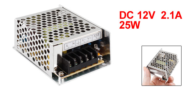 Product Name Switching Power Supply Model No. S-25-12 Input 110-240VAC0.5A 47/63HZ Output DC 12V, 2.1A DC Output Power 25W Terminal Quantity 5 Total Size 8.5 x 5.8 x 3.2cm / 3.3" x 2.3" x 1.3" (L*W*T) Case Material Metal Main Color Silver Tone Net Weight 142g Package Content 1 x Switching Power Supply - Reviews