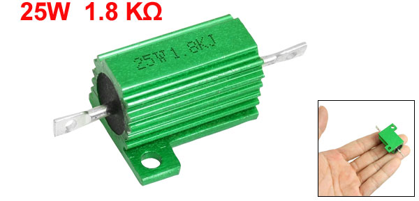 25W Power 1.8K Ohm 5% Chassis Mount Green Aluminium Clad Resistor