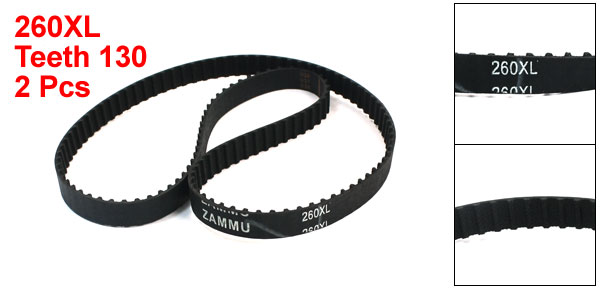 260XL 130 Teeth 10mm Width Rubber Industrial Synchronous Timing Belt Black 2Pcs