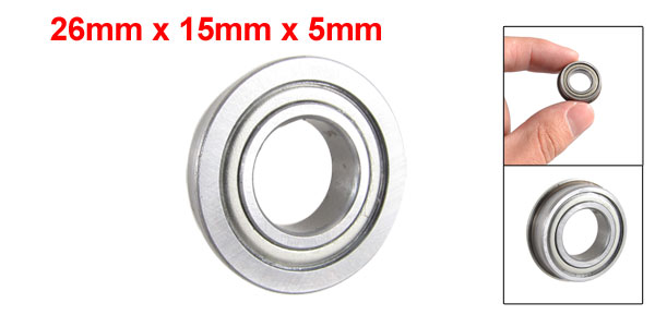 26mm x 15mm x 5mm Radial Shielded Deep Groove Flanged Ball Bearing Silver Tone