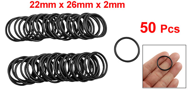 Product Name O Ring Material Nitrile Rubber(NBR) Quantity 50 ±2% Pcs Outside Diameter 26mm / 1.023" Inner Diameter 22mm / 0.866" Thickness 2mm/ 0.078" Color Black Weight 16g Package Content 50 x NBR O Ring - Reviews