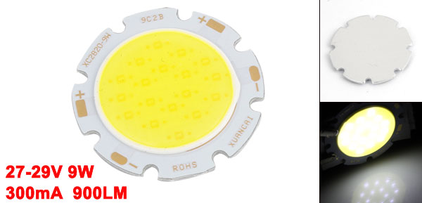Product Name COB LED Lamp Chip Rated Voltage 27-29V Luminous Flux 900LM Color Temperature 6000-6500K Power 9W Current 300mA Light Color Pure White Material Aluminum Color Silver Tone, Yellow Diameter 28mm/1.1" Luminous Surface 20mm/ 0.79" Weight 3g Package Content 1 x COB LED Lamp Chip - Reviews