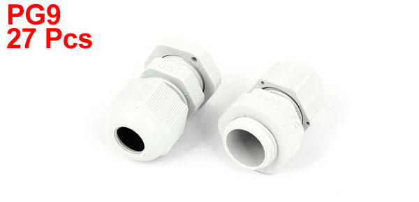 27 Pcs White Plastic Waterproof Cord Grip 4-8mm Dia Cable Glands Connector PG9