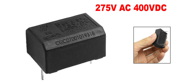Product Name Motor Capacitor Housing Material Plastic Dielectric Material Polypropylene Film Capacitance 5uF Tolerance ±5% Rated Voltage 275V AC 400VDC Temperature Operating -40/105/21 Lead Spacing(Approx.) 4.2cm/1.7" Lead Length 2.1cm/0.8" Overall Size 3.6 x 2.5 x 1.7cm / 1.4" x 1.0 x 0.7" (L*W*H) Color Black Weight 19g Package Content 1 x Motor Capacitor - Reviews