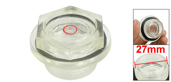 Details27mm Male Thread Dia Plastic Air Compressor Oil Level Sight Glass Clear  Product Name Oil Level Sight Glass Material Plastic Color Clear, Black Thread Diameter 27mm/ 1.1" Overall Size 37 x 23cm/ 1.5" x 0.9" (D*H) Net Weight 9g Package Content 1 x Oil Level Sight Glass