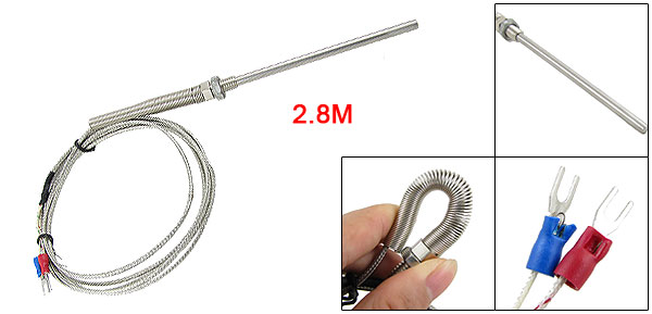 Product Name Thermocouple Type K Type Temperature Range 0-400°C(32-752°F) Probe Diameter 4mm / 0.15" Probe Length 95mm / 3.7" (Not Included Flexible Section) Thread Diameter 8mm / 0.31" Internal Insulation Fibreglass External Shielding Metal Shield Total Length 2.8M / 110" Fork Terminal Spacing 3.5mm / 0.13" Color As Picture Shown Weight 56g Package Content 1 x Type K Thermocouple - Reviews