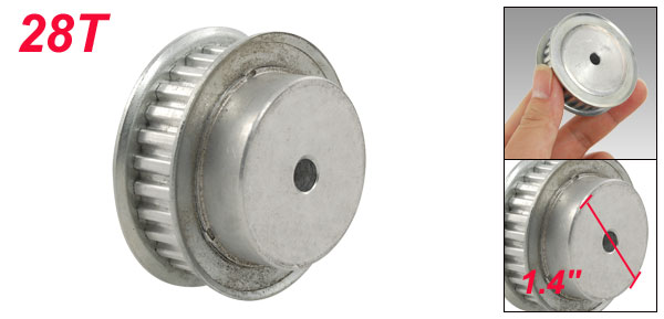 Product Name Timing Pulley Type XL037 Material Metal Color Silver Tone Number of Tooth 28 Pitch 5.08mm/1/5'' Outside Diameter 36mm/1.4'' Overall Size 50 x 25mm/2'' x1'' (D*H) Bore Diameter 6mm/15/64" Fit Belt Max. Width 11mm/0.43'' Weight 103g Package Content 1 x Timing Pulley - Reviews