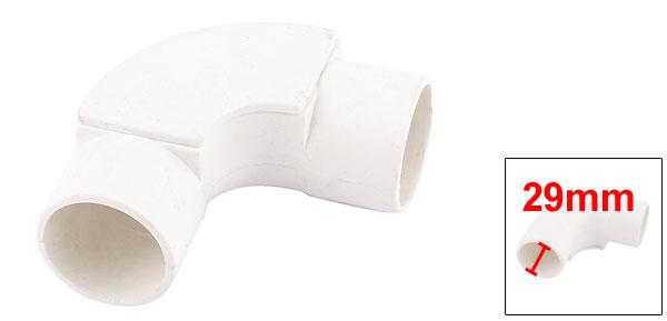 Product Name PVC Conduit Pipe Type 90 Angle Degree Color White Total Size 80 x 29 x 25mm/ 3" x 1.1" x 1"(L*Outer Dia*Inner Dia) Material Plastic Weight 27g Package 1 x PVC Conduit Pipes