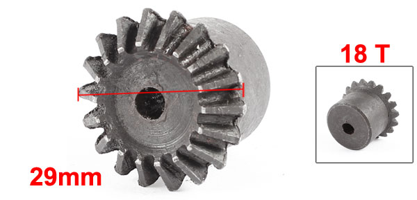 Product Name Bevel Gear Material Metal Type M1.5 Teeth Number 18 Outside Diameter 29mm/1.1" Bottom Diameter 22mm/0.87" Bore Diameter 5mm/0.2" Total Height 23mm/0.9" Net Weight 64g Package Content 1 x Bevel Gear - Reviews