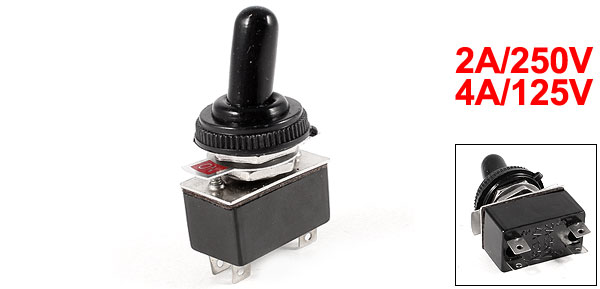 2A/250V 4A/125V ON/ON 2 Position DPST 4 Terminals Toggle Switch w Waterproof Cap