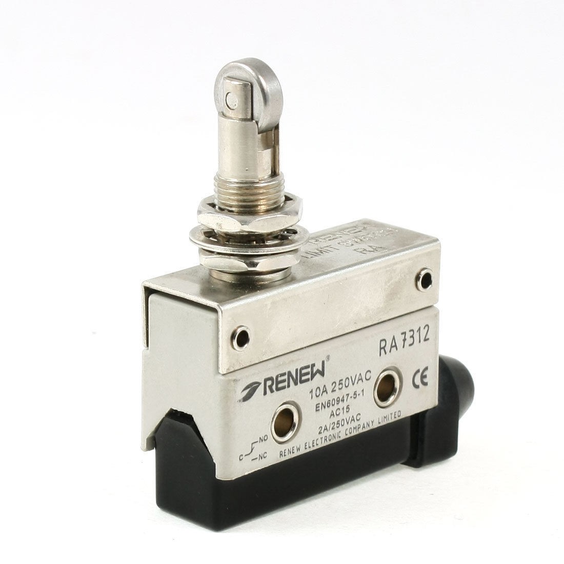 Product Name Limit Switch Model No. RL-7312 Actuator Type Cross Roller Plunger Contact Type 1 NO 1 NC,1 Com(SPDT) Ui 250V Ith 10A AC-15 Ue: 250V, le: 2A Thread Diameter 12mm/0.5" Roller Wheel Size 12.5 x 5mm / 0.5" x 0.2"(D*T) Body Size(Approx.) 54 x 40 x 21mm / 2.1" x 1.6" x 0.8"(L*W*H) Overall Height 76mm/3" Hole Diameter 4.4mm/0.2" Hole Center Distance 25mm/1" Material Metal, Plastic & Rubber Net Weight 90g Package Content 1 x Limit Switch - Reviews
