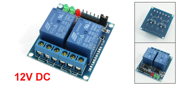 Product Name Relay Module Model SRD-12VDC-SL-C Number of Channels 2 Coil Voltage 12V DC Load 10A, AC 250V/125V, DC 30V/28V Size 4.5 x 4 x 2cm/1.8" x 1.6" x 0.78"(L*W*H) Material PCB Color Blue Weight 37g Package 1 x Relay Module - Reviews