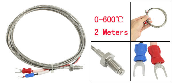 Product Name Thermocouple Type K Type, Screw Type Temperature Range 0-600C Thread Diameter 6mm / 0.24" Fork Terminal Spacing 4mm / 0.16" Probe Length 26mm/ 1.02" Cable Length 2M/ 79" Color Silver Tone, White Net Weight 32g Package Content 1 x Screw Thermocouple - Reviews