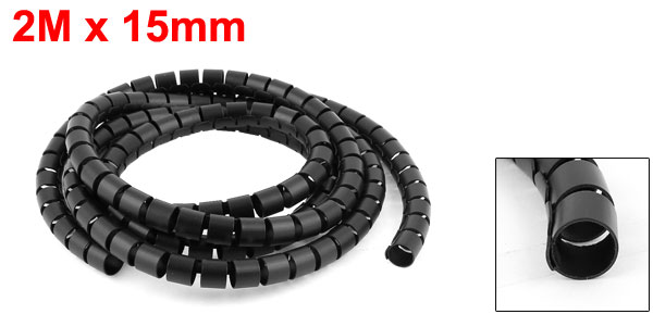 2m 6.6ft 15mm Inner Dia Black Spiral Wrapping Bands Cable Organizer Wrap
