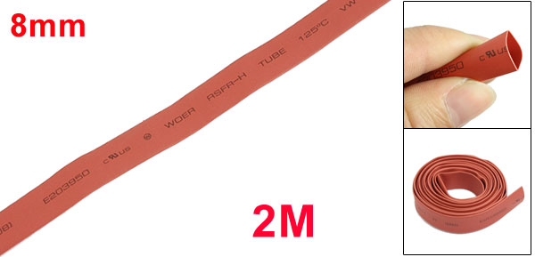 2m 6.6ft 8mm 5/16" Dia. Heat Shrink Tubing Tube Red